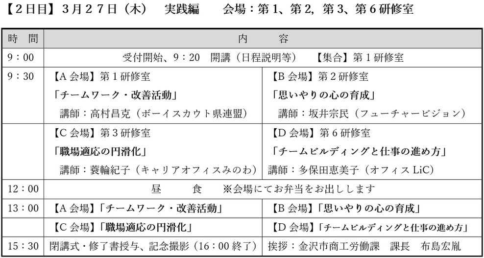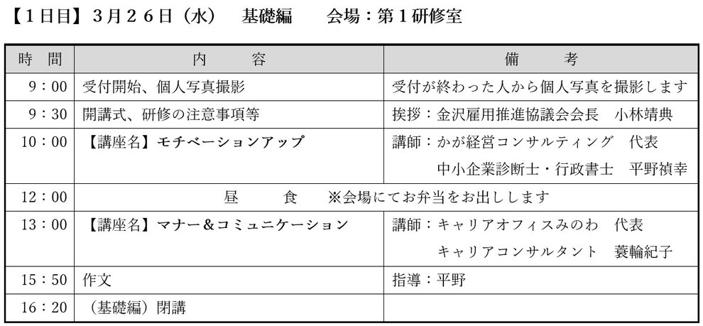 毎年3月に学校を卒業し、翌月の入社を控えた新規学卒者を対象に、3月下旬に新人研修を行っています。